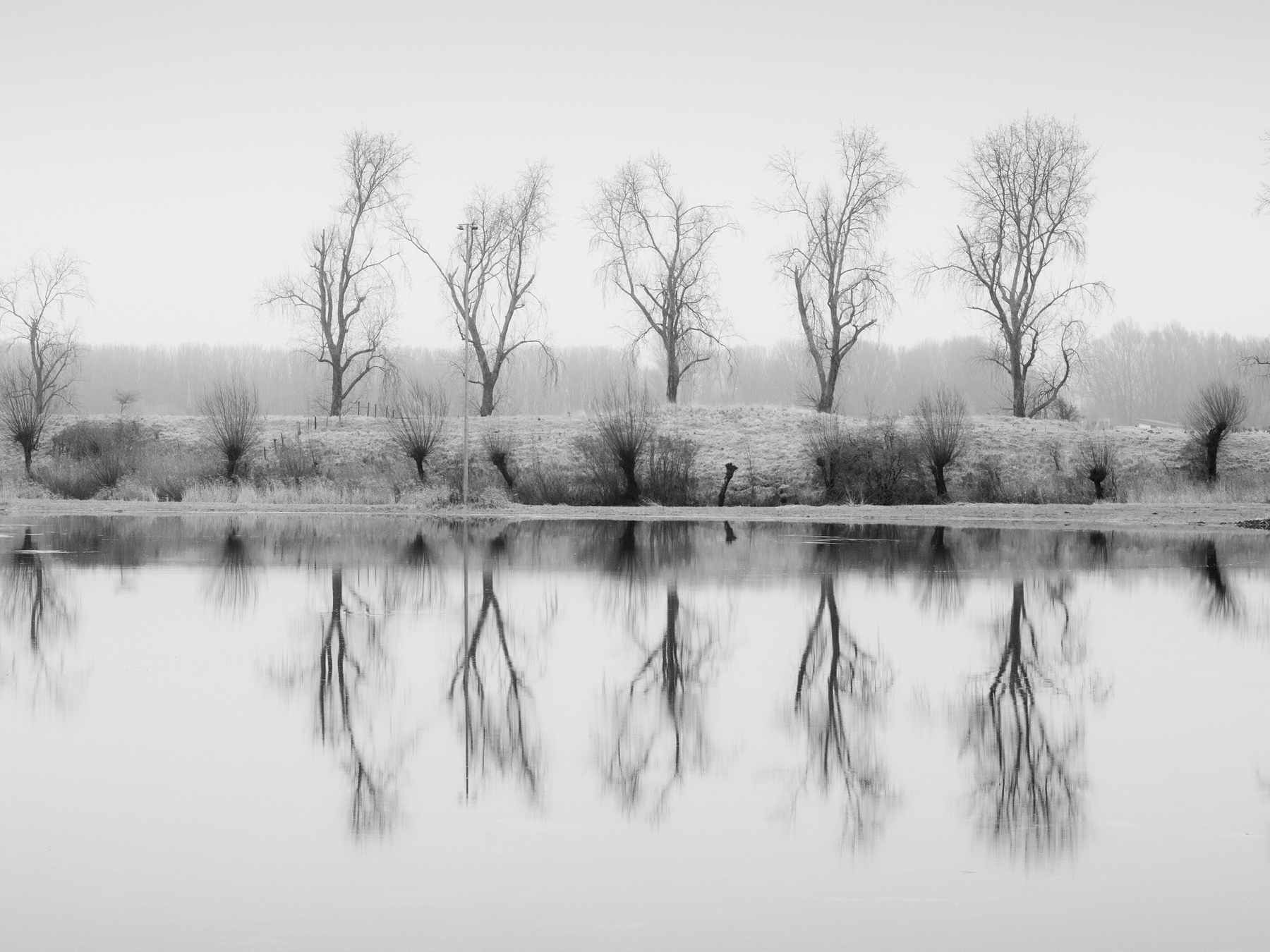 Deze maakte ik onderweg naar huis. Ik wilde langs de supermarkt en de navigatie stuurde me binnendoor, waar ik langs een plas kwam met rustig water en deze prachtige reflectie. Gelukkig was er een parkeerplaats vlakbij.